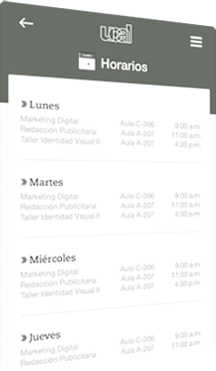 Aquí podrás revisar los horarios de cada uno de tus cursos en los que te has matriculado.